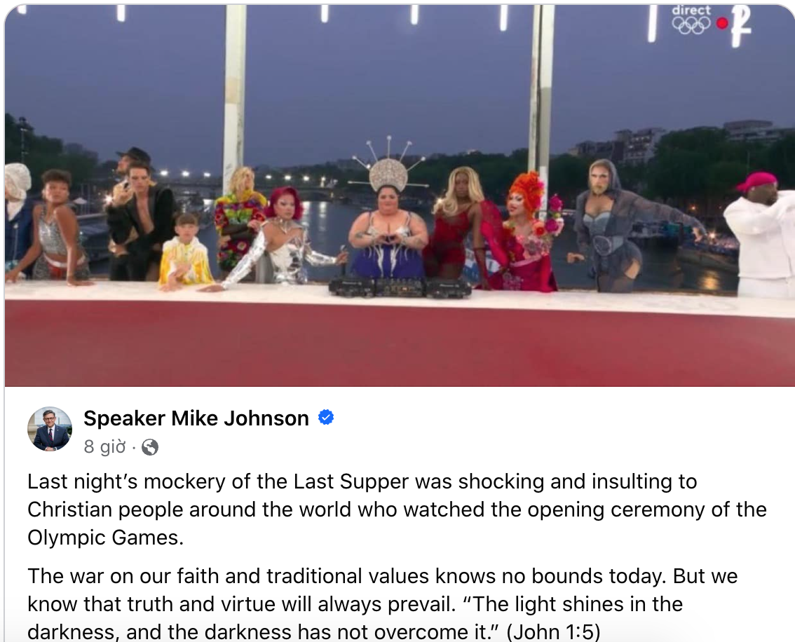 Chủ tịch Hạ viện Mỹ Mike Johnson bình luận trên trang cá nhân của ông rằng: