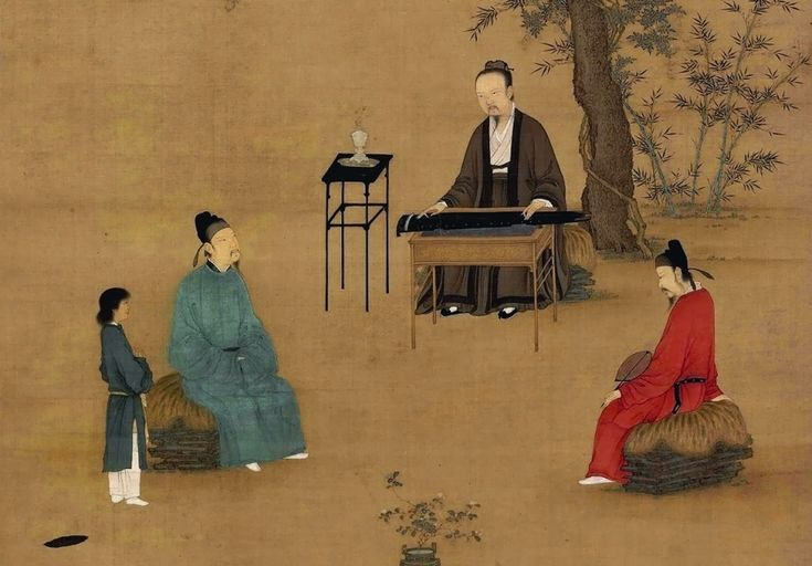 Khương Ký, một trong Trúc Lâm thất hiền thời Ngụy Tấn, nói: "Cầm năng cảm thiên địa dĩ trí hòa" - đàn có thể cảm động trời đất để đạt đến sự hòa hợp. Người chơi đàn, tĩnh lặng an tọa, tâm không tạp niệm, thân ngoại vô vật, cổ kim bất tồn. Lúc này, chỉ có đàn, chỉ có người, chỉ có trời đất, hàm chứa tinh thần nội tại của sự hợp nhất thiên, địa, nhân. Ở Trung Quốc cổ đại, dù là đàn hay trà, đều là trong tĩnh lặng mà nhìn thấu nội tâm, nuôi dưỡng tính trung chính bình hòa.