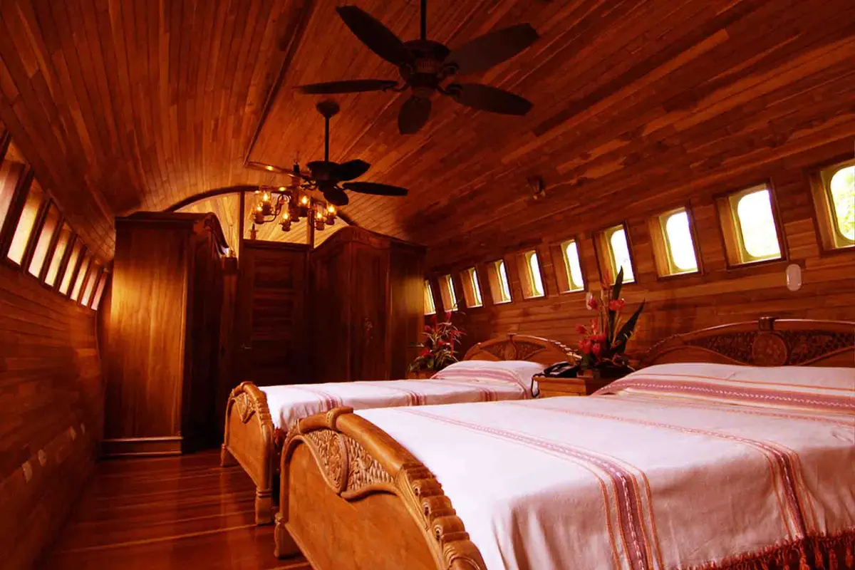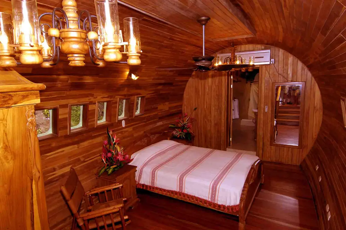 Hai phòng ngủ chào đón khách bằng những bức tường gỗ ấm áp. Một nhà bếp, hay còn gọi là bếp nhỏ, được đặt trong phần khung máy bay chắc chắn, phần cánh máy bay nơi cánh nối với thân máy bay. Phòng tắm và vòi hoa sen được đặt gọn gàng ở phần đuôi.