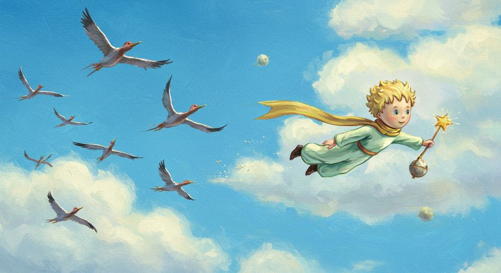 Người kể chuyện là một phi công, bắt đầu câu chuyện với một giai thoại từ thời thơ ấu của mình, và một số người lớn không hiểu được một trong những bức vẽ của anh. Sự bất lực của “người lớn” trong việc hiểu những điều thực sự quan trọng trong cuộc sống (khác với trẻ em) trở thành một chủ đề lặp đi lặp lại. Ở đây, chúng ta cần hiểu rằng thuật ngữ "người lớn" của Saint-Exupéry không chỉ áp dụng cho tất cả người trưởng thành, mà thay vào đó là những người đã đánh mất cảm giác ngạc nhiên như trẻ thơ.