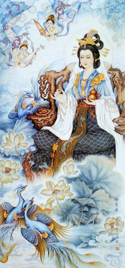 Tây Vương Mẫu là nữ thần trong thần thoại Trung Quốc và tín ngưỡng dân gian Trung Hoa, cũng là nữ tiên trong Đạo giáo, được người đời tôn xưng là “Vương Mẫu Nương Nương”, “Dao Trì Kim Mẫu”, “Tây Dao Tiên Lão”... Tây Vương Mẫu cư ngụ trong khu vườn trên đỉnh Lăng Phong của núi Côn Lôn, lầu các tráng lệ cao đến chín tầng, bên trái là Dao Trì, bên phải là dòng nước biếc bao quanh.